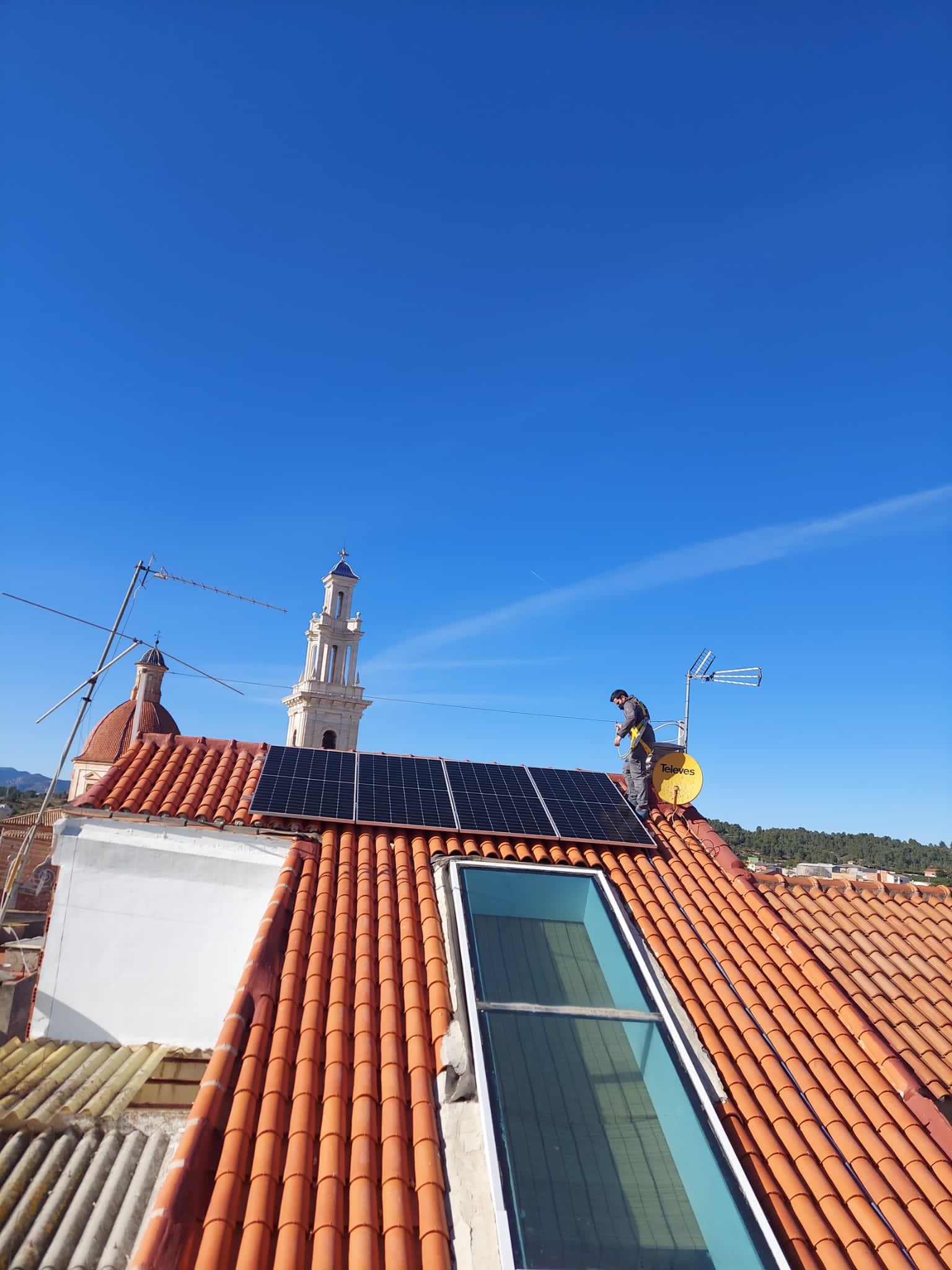 Realizamos la colocación de 7 módulos de 460Wp y el montaje de inversores híbridos 3 kW o similar con la preparación y fijación de la estructura de estructura metálica de aluminio coplanar.