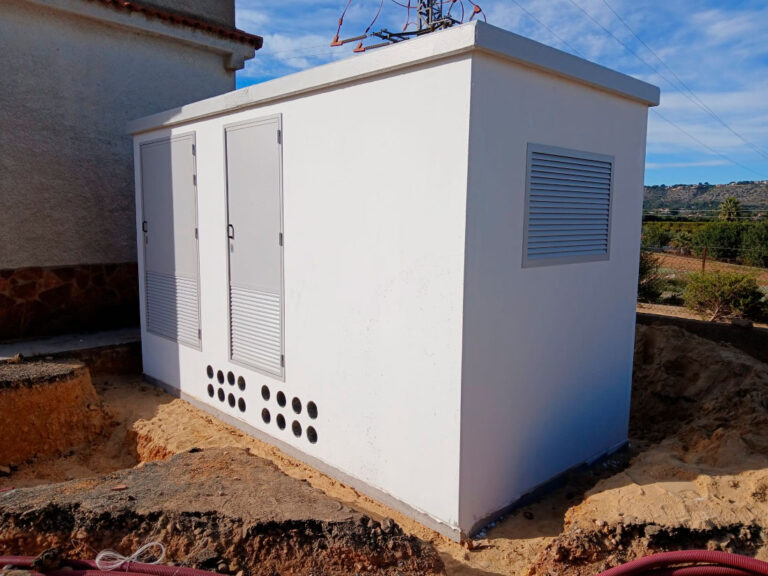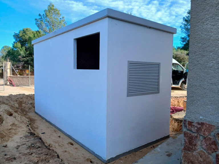 Caseta técnica de hormigón personalizada para instalaciones eléctricas y de control.