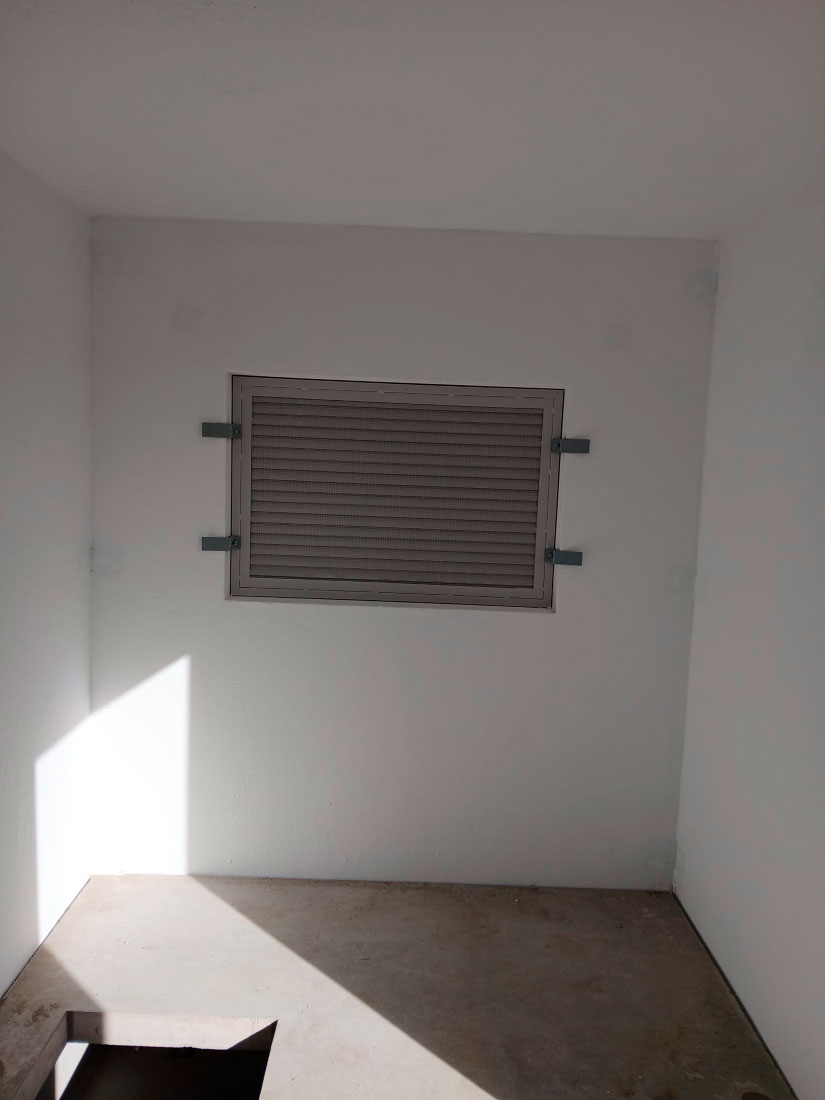 - 3 rejillas de ventilación: 1.200 mm × 800 mm, pintadas en RAL 7047.