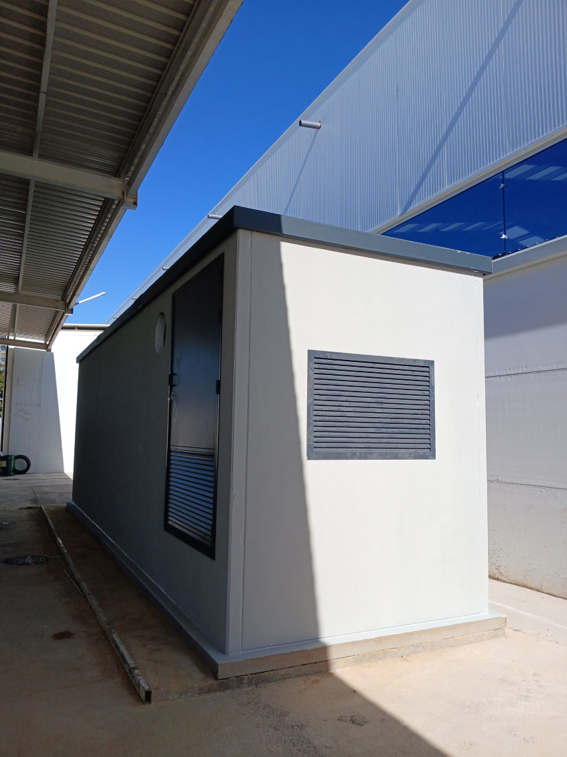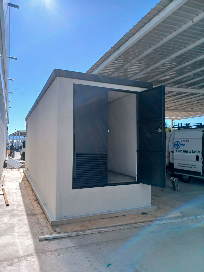 Edificio prefabricado tipo Centro de Transformación (CT) para instalación fotovoltaica.
