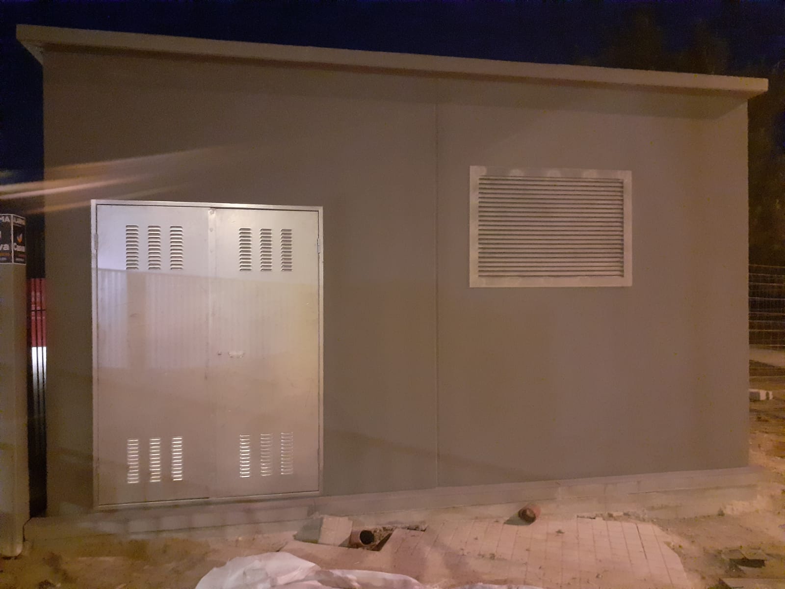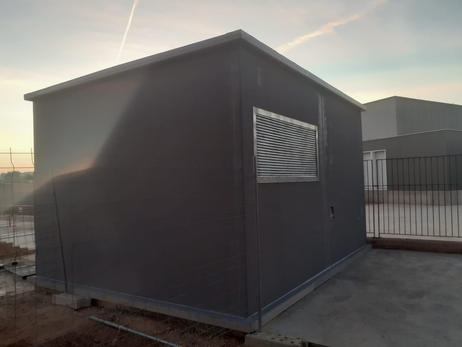 En Turelectric hemos realizado la construcción de un edificio prefabricado para la empresa constructora Geocivil S.A. donde albergarán una estación de bombeo instalado en Bétera. El edificio cuenta con unas dimensiones de 5.400x 4.400x 3.000 con las siguientes características: