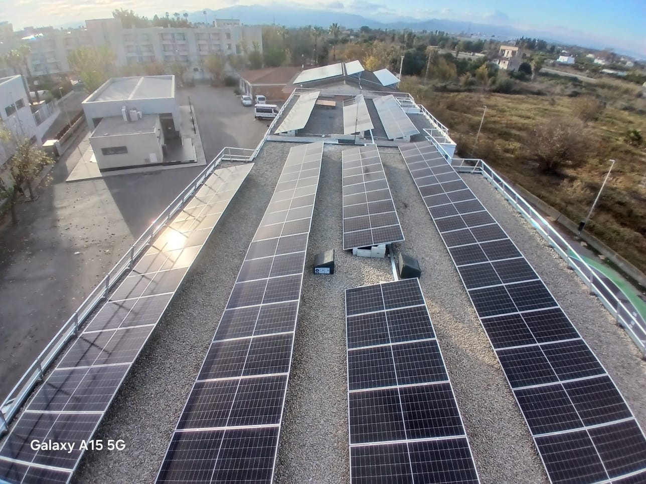 Instalación en funcionamiento que genera energía renovable para consumo compartido, reduciendo la dependencia de la red eléctrica, optimizando la factura energética y contribuyendo a la disminución de emisiones de CO₂.